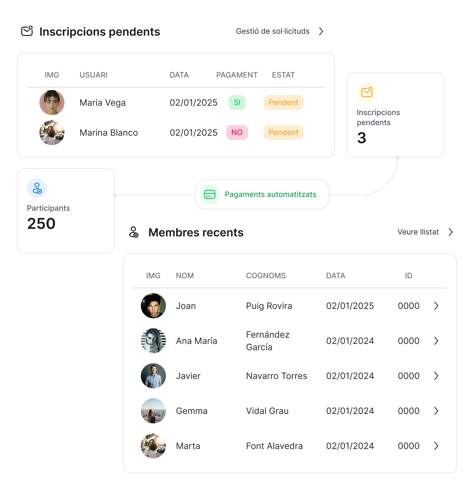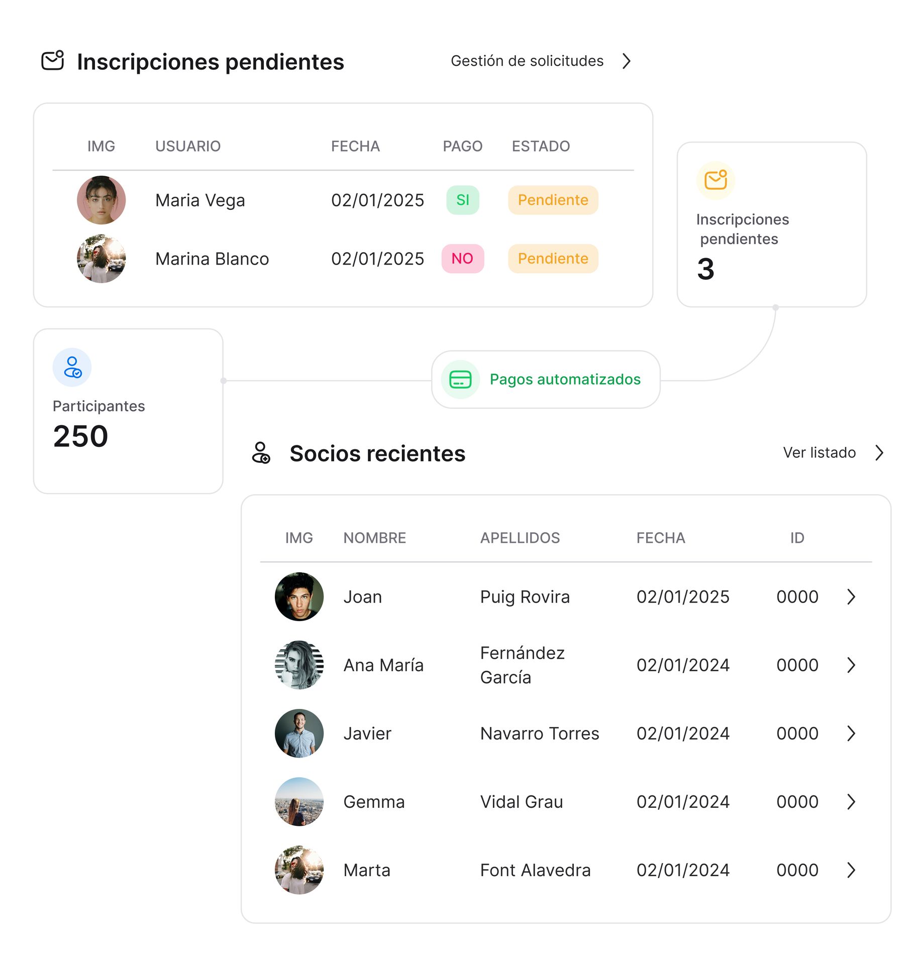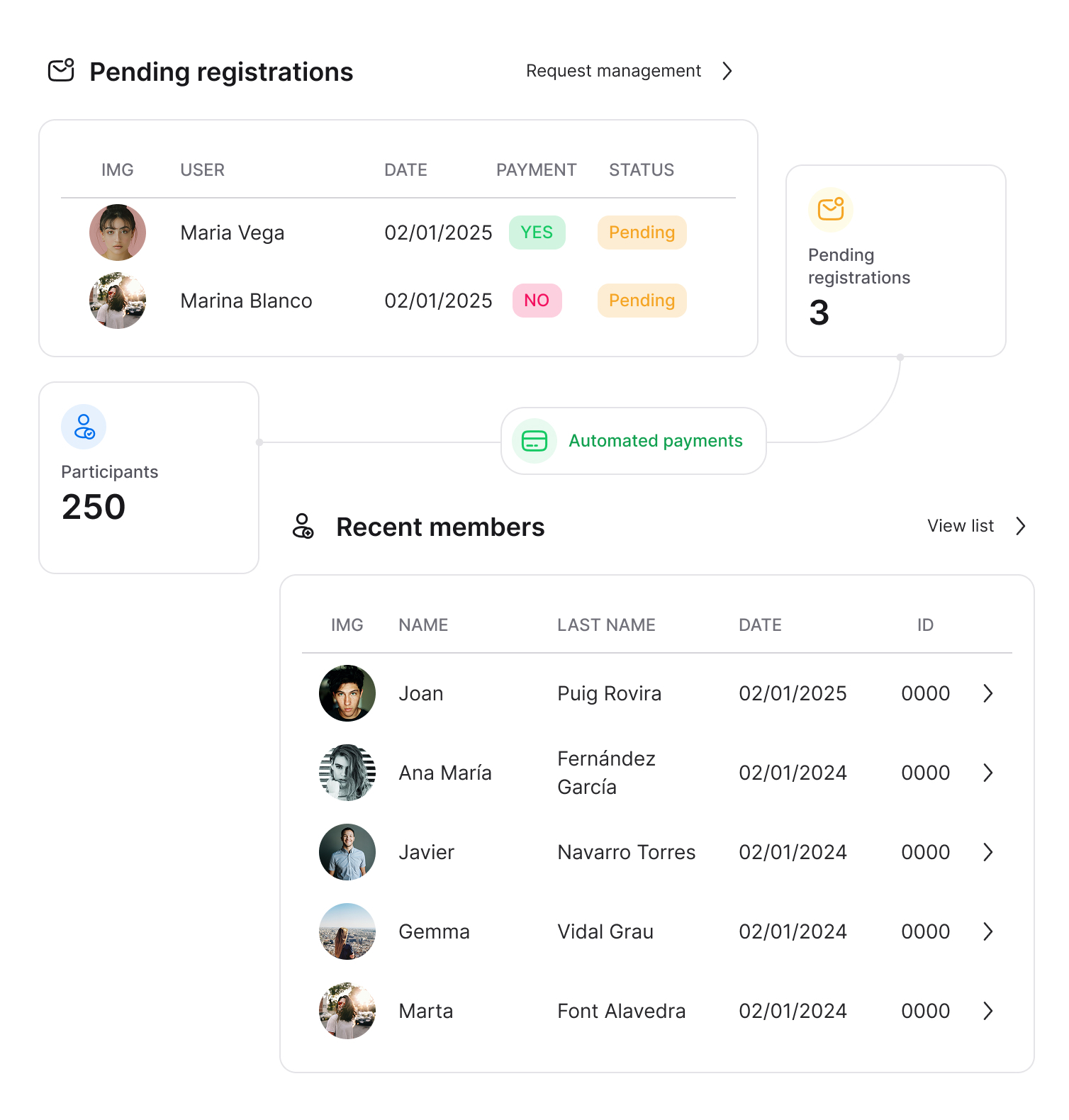 Gestiona miembros, renovaciones y comunicaciones sin hojas de cálculo.
