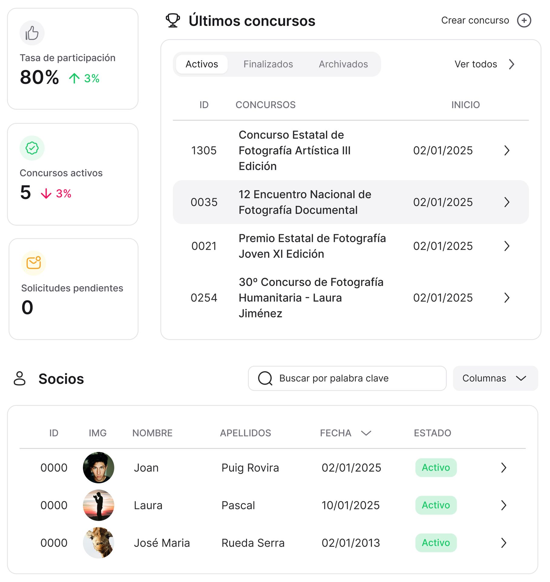 Crea concursos professionals, gestiona socis i subscripcions, i fes créixer la teva associació amb eines pensades per a tu.